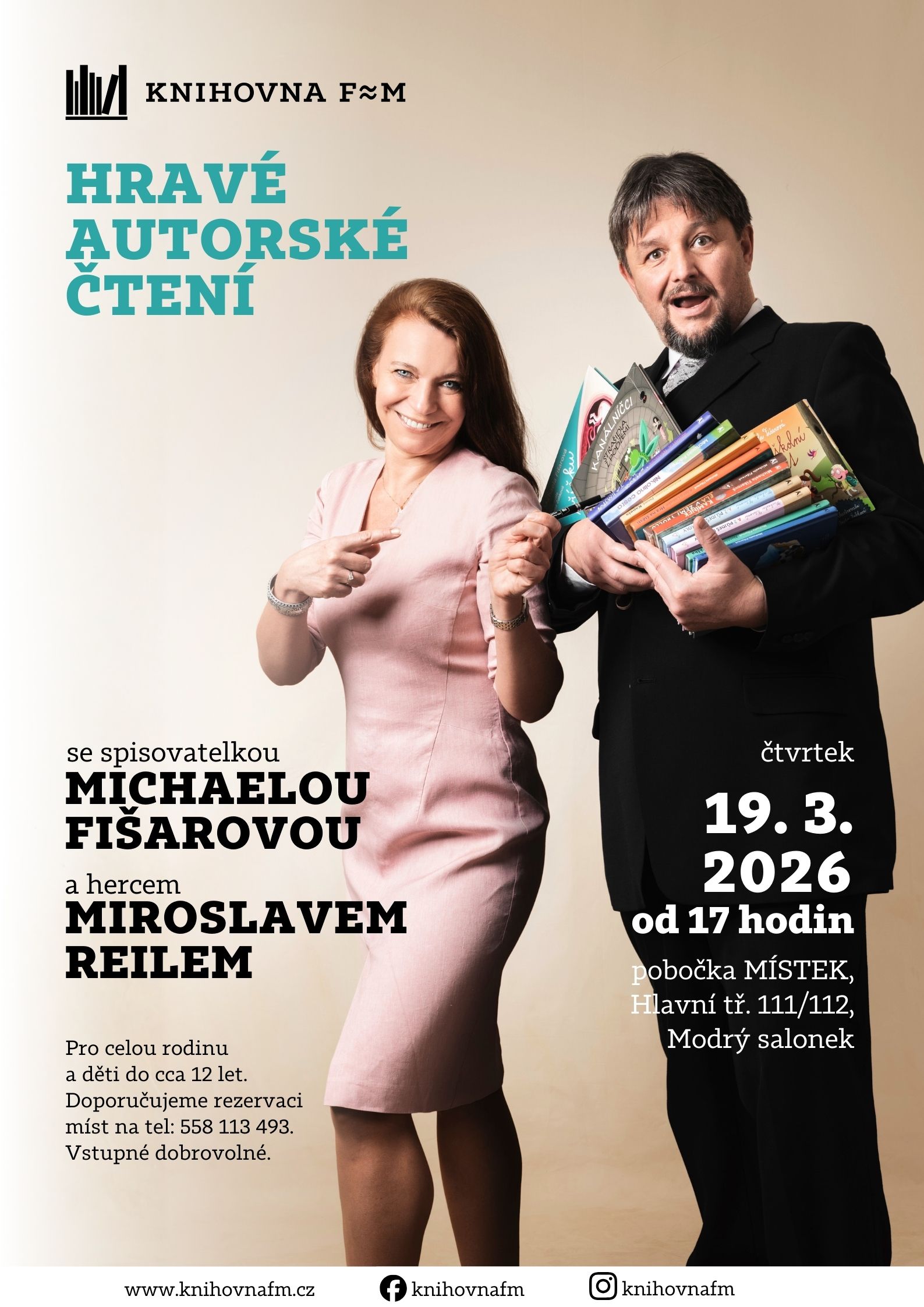 Hravé autorské čtení se spisovatelkou Michaelou Fišarovou a hercem Miroslavem Reilem